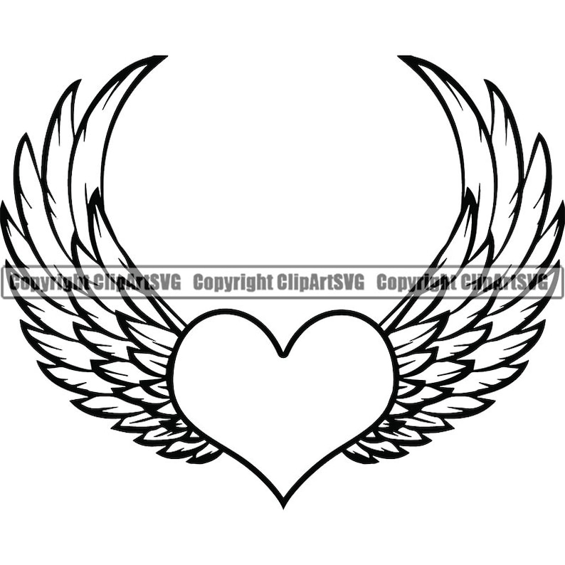 Svg Heart Wings Tattoo Forever Love Silhouette Clipart Cut Etsy