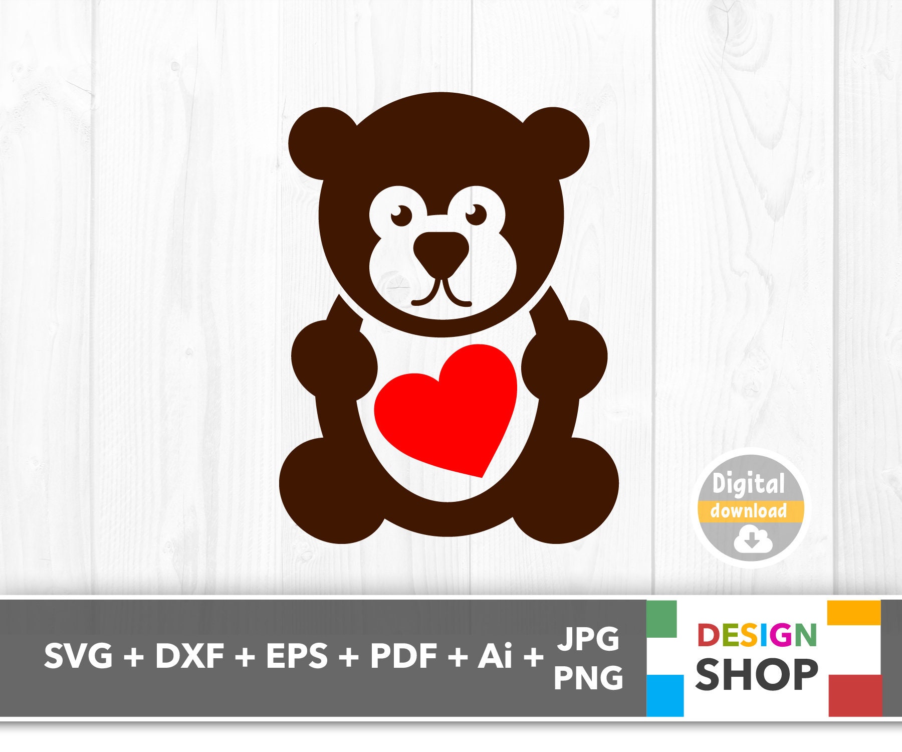 Bear With Heart Svg Bear Heart Svg Bear Svg File Valentines Etsy