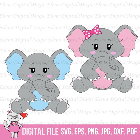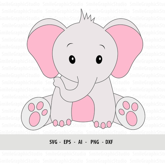 Cute Baby Elephant Svg Pink Grey Elephant Girl Cut File For Etsy