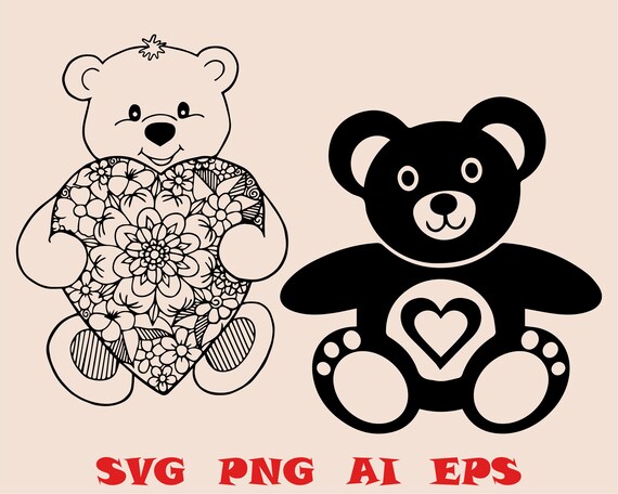 Teddy Bear With Heart Svg Zentangle Silhouette Love Cut Etsy