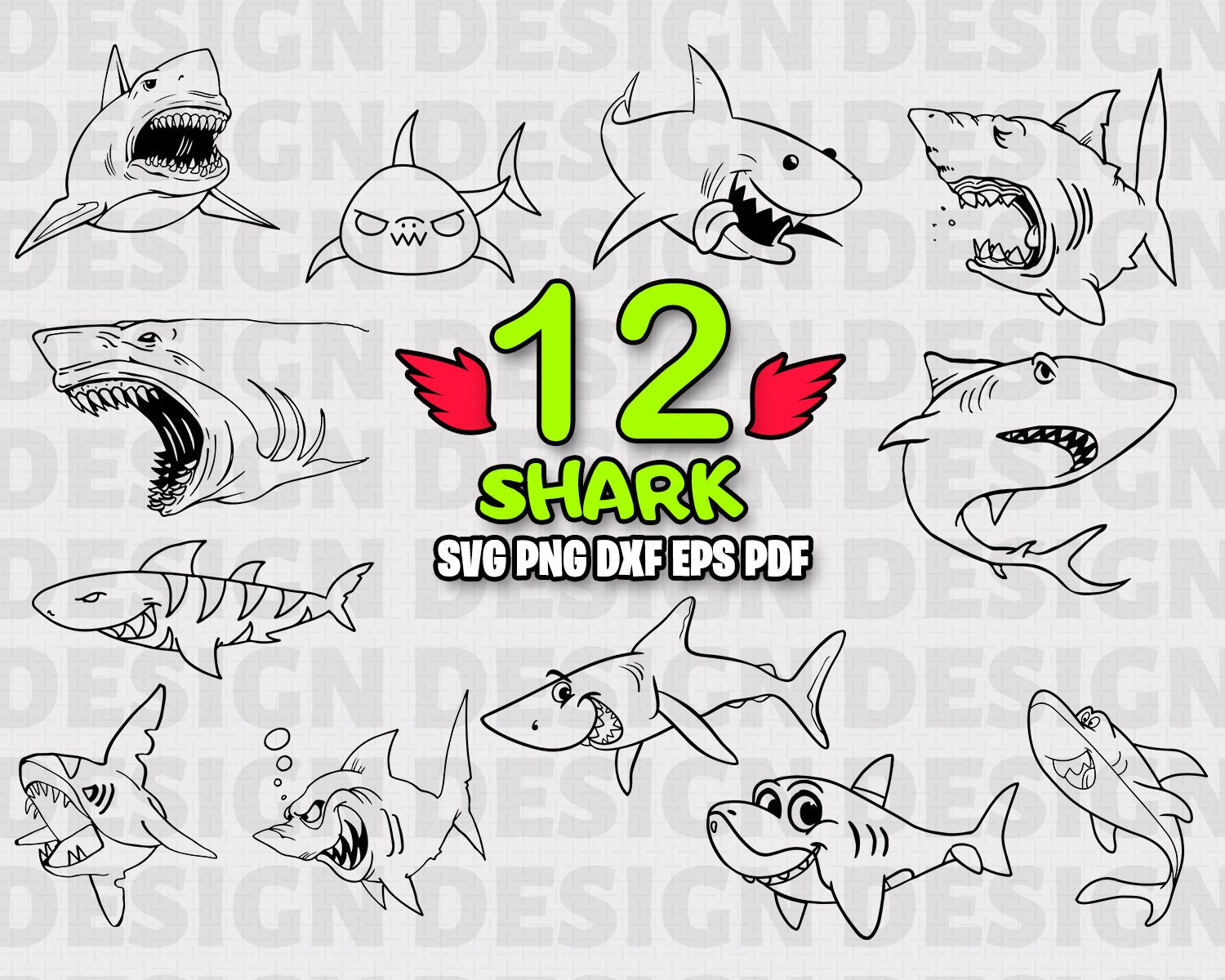 8 In 1 Bundle Shark Bundle Svg Shark Family Svg Shark Svg Etsy