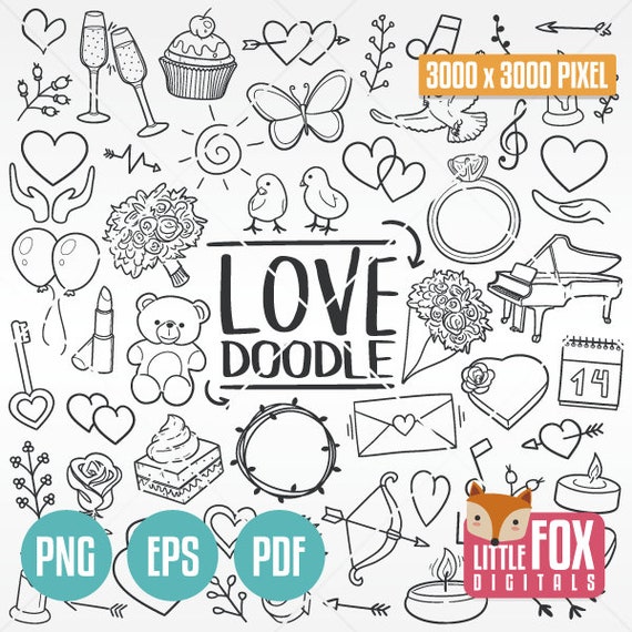 Love Romantic Valentines Wedding On Love Couple Doodle Etsy